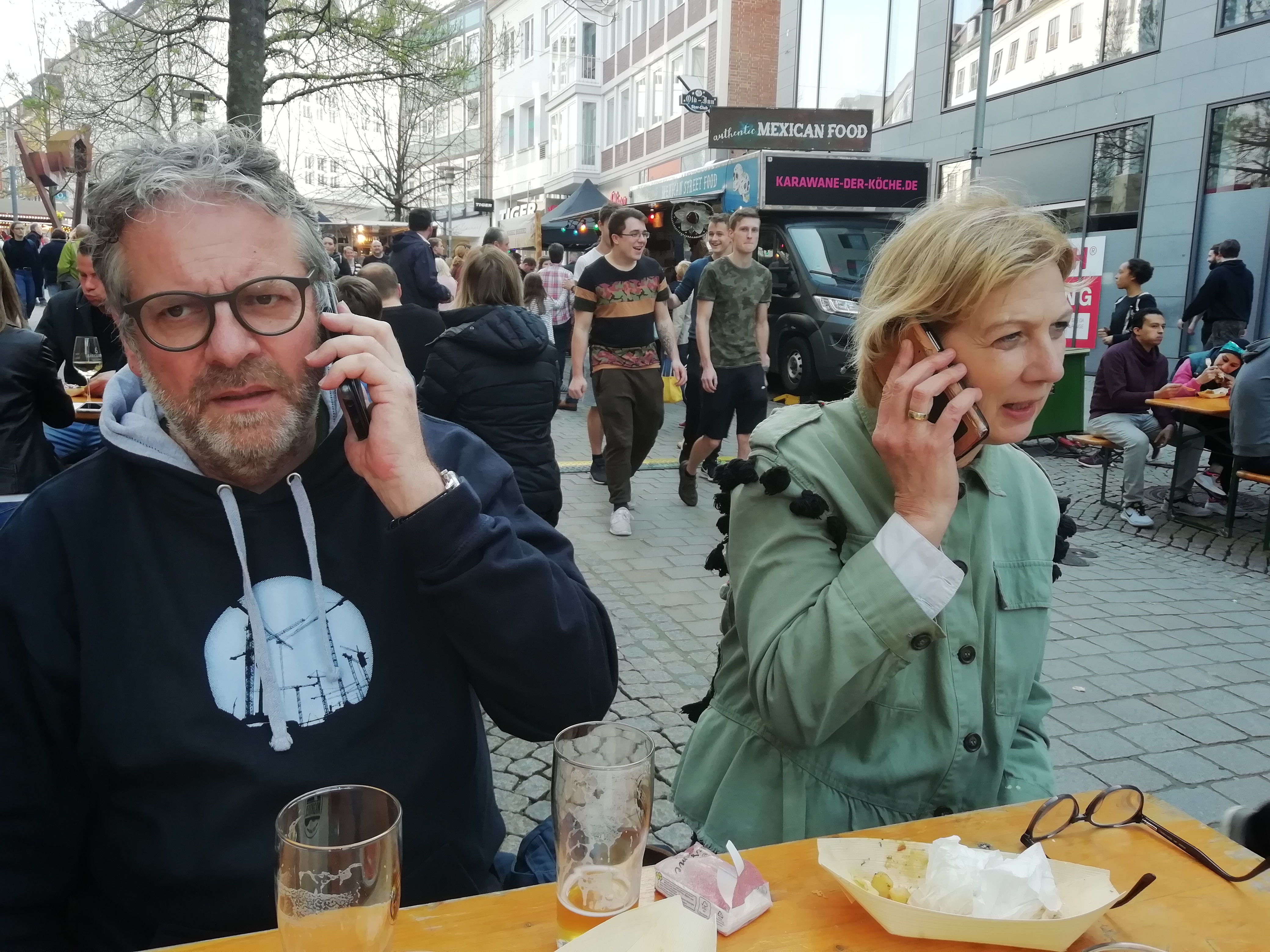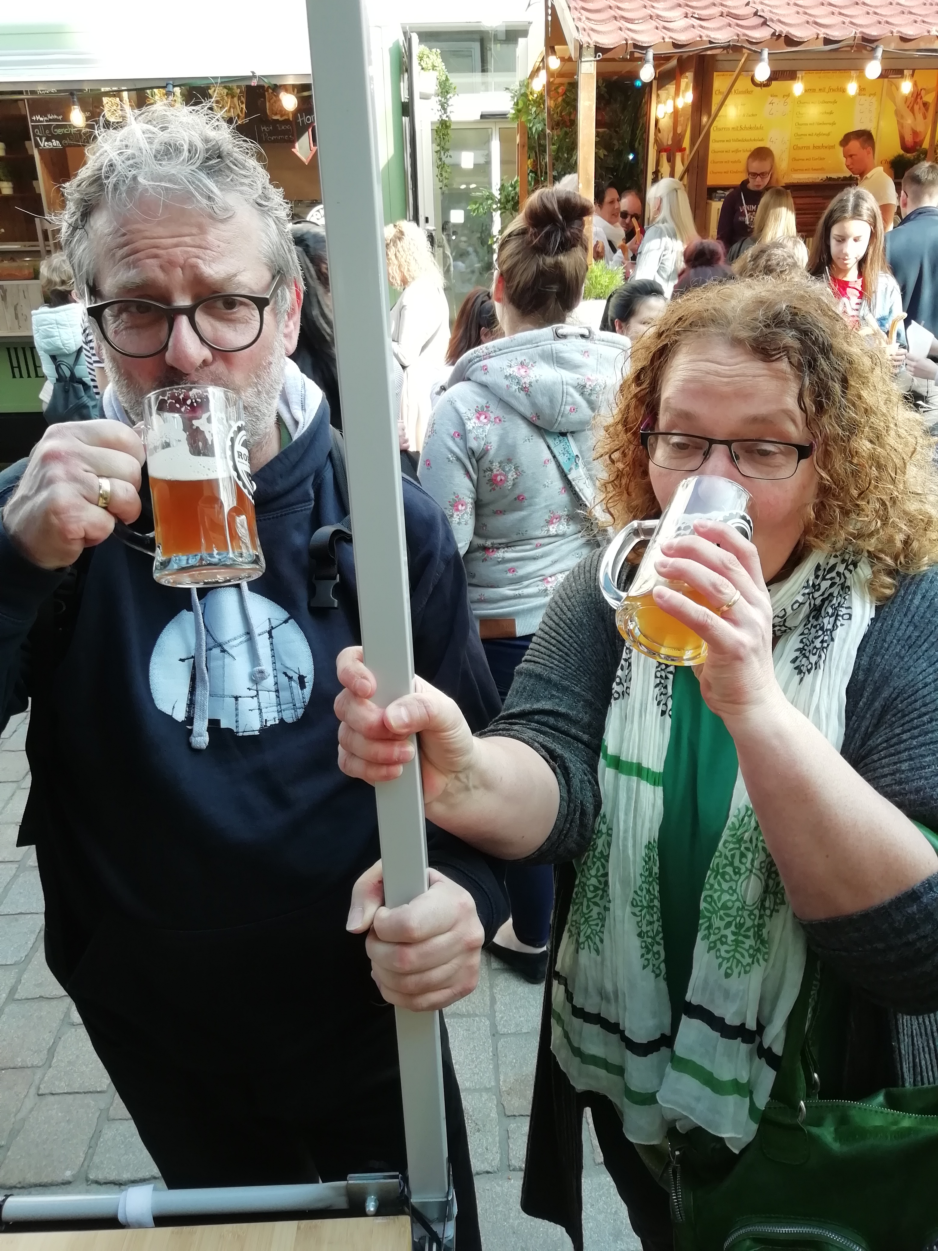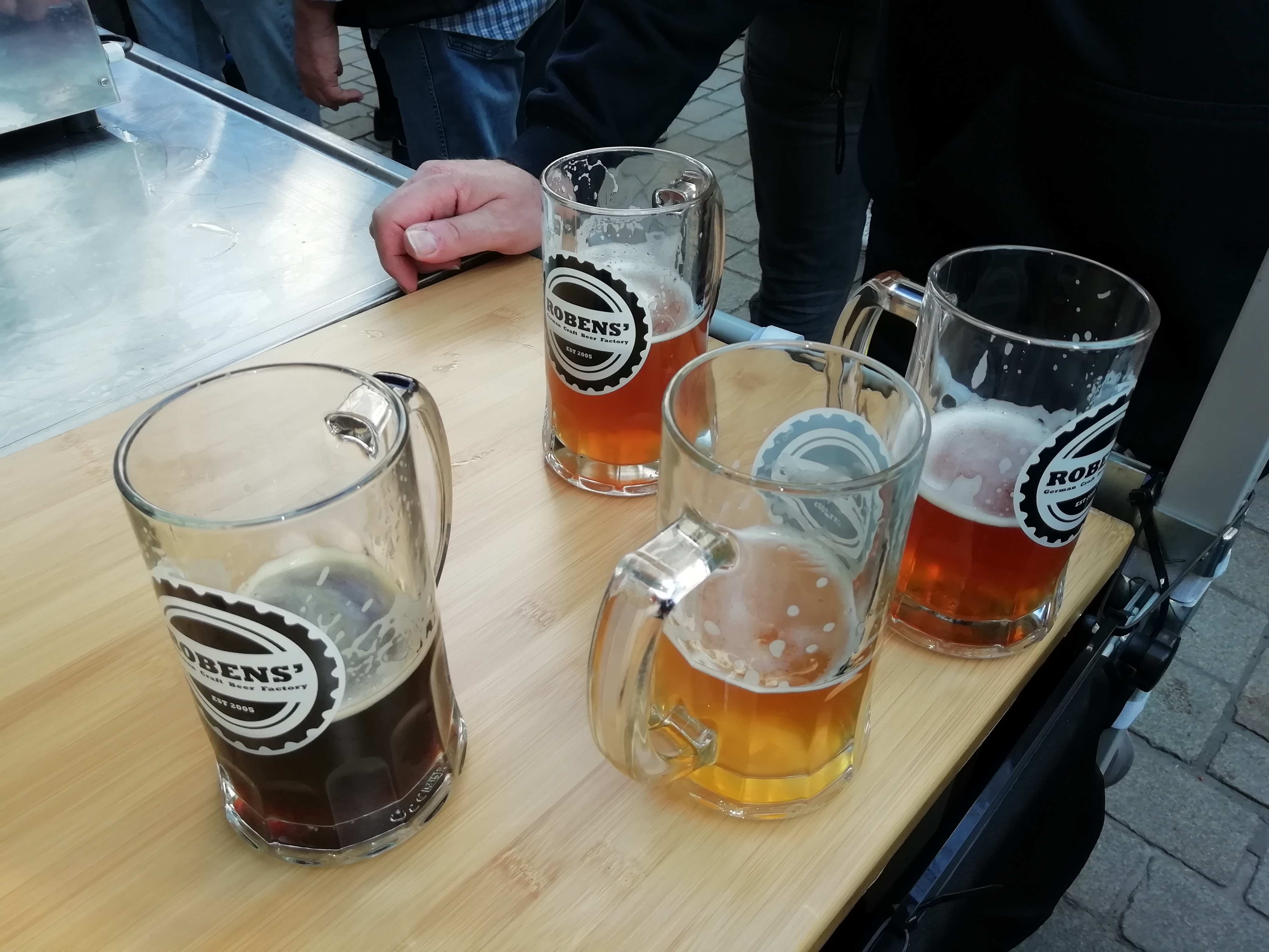 Am Wochenende war Schmeckfest oder Hopfen und Happen in Hildesheim. Die Fußgängerzone war gefüllt mit Foodtrucks und Ständen der lokalen Craft Brauereien. Dazu spendierte und das Wetter sommerliche T-Shirt-Temperaturen. Wir haben uns mit Georg und Carolin dort zum Probieren getroffen. Zu viert konnten wir jeweils das Sortiment der Stände in seiner breiten Vielfalt kosten. Jeder bekam ein anderes Bier das wir dann kreisen ließen.